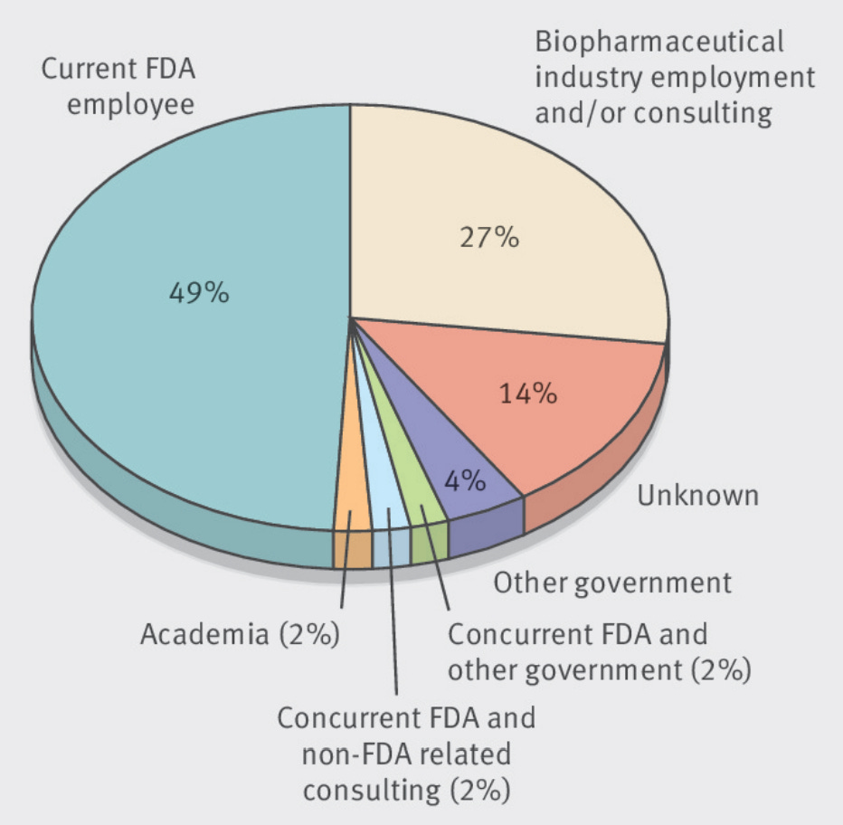 The most common career path for someone after working at the FDA is to join the pharmaceutical industry. For example, in 2016, Vinay Prasad published a study of the fate of the FDA’s 55 reviewers for hematology and oncology drugs (one of the most profitable drug sectors), finding that over half of them had entered the industry they regulated.