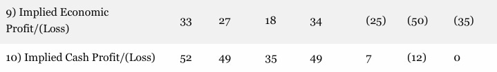 - 9: Economic profit/loss = Market Price – Total Cost (covers cash costs + amortized capex).