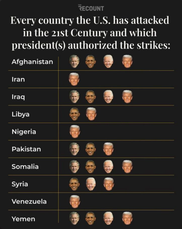 And it seems to be getting worse with time. In fact, here is the box score for the last 10 US military interventions and the number of them embraced by each of America’s four presidents during the 21st century to date.